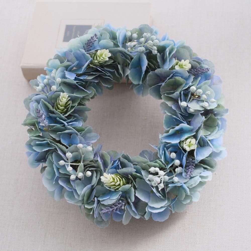 濃淡のある青色の紫陽花をふんわりあしらいました。