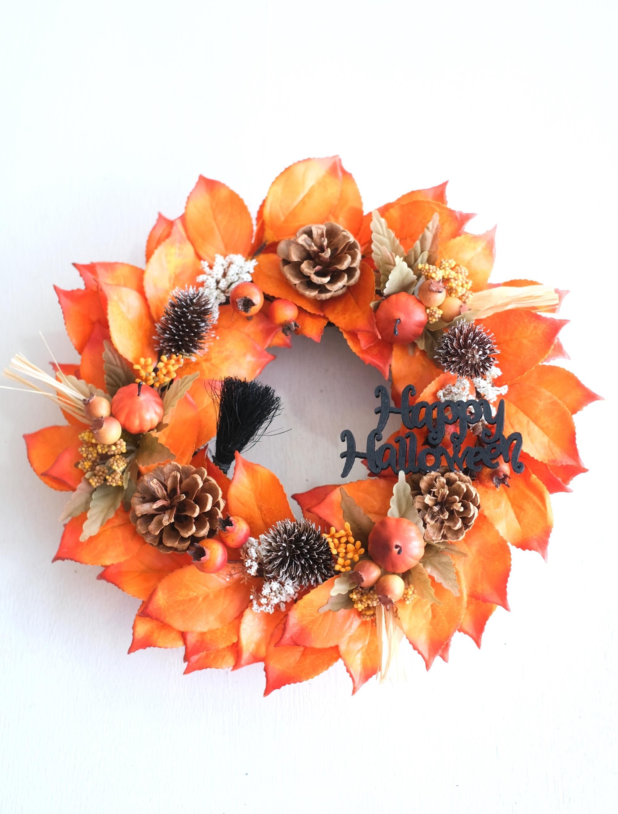 木の実やかぼちゃをバランスよくあしらい、ハロウィンのロゴをアクセントに添えました。